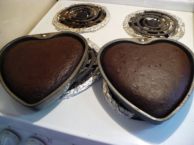 I also DOUBLED the recipe because I made TWO heart-shaped cakes. Originally, I planned on making a layer cake, but desserts (especially chocolate ones) tend to disappear pretty quickly around this place, so I decided to just have two cakes. Just be aware that the recipe is only for ONE small cake.